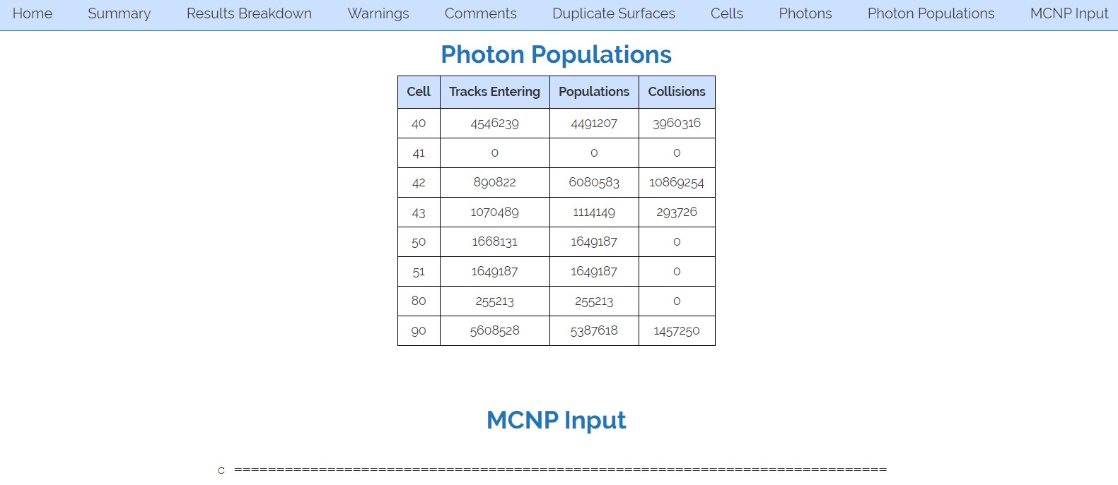 Eddy collates key information from an output file so that it can be quickly reviewed. Normalisation factors can also be specified to simplify interpretation of tally outputs.