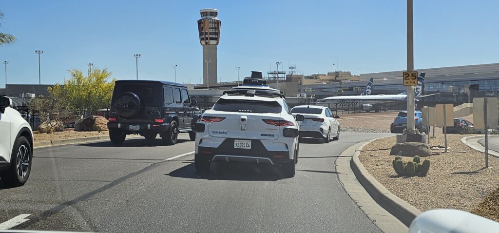 That became even clearer at the airport pick-up and drop-off in Phoenix. It was very busy, with human drivers everywhere, several Waymos moving through the same space, and the usual airport chaos where nobody hangs around and everyone is in their own world. John and I both noticed that the Waymos still behaved in a very algorithmic way. You could see it was making predictions about what other cars were doing, but its predictions were not human in the way a taxi driver’s instincts are. There were moments when I found it was easier read the behaviour of other drivers than the system found it.